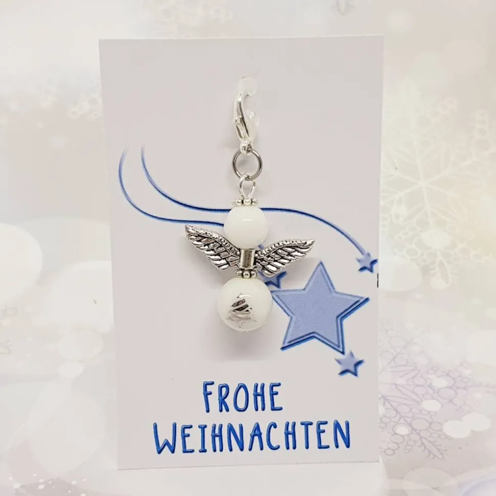Mit einer Größe von ca. 2,5 cm ohne Karabiner passt der Schutzengel an Schlüssel, Taschen oder als Geschenk in jeden Adventskalender. Dank des Karabiners lässt er sich einfach befestigen und wird auf einer hübschen Schmuckkarte geliefert. Du kannst beim Bestellen das Wunschkärtchen angeben – solltest Du nicht das passende finden, kontaktiere mich gerne persönlich.