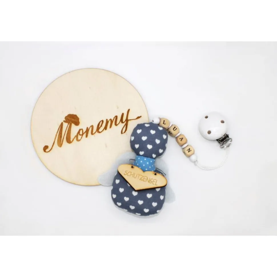 zusätzlich mit Holzclip weiß und Holzherz „Schutzengel“ um den Hals – 20,00 Euro