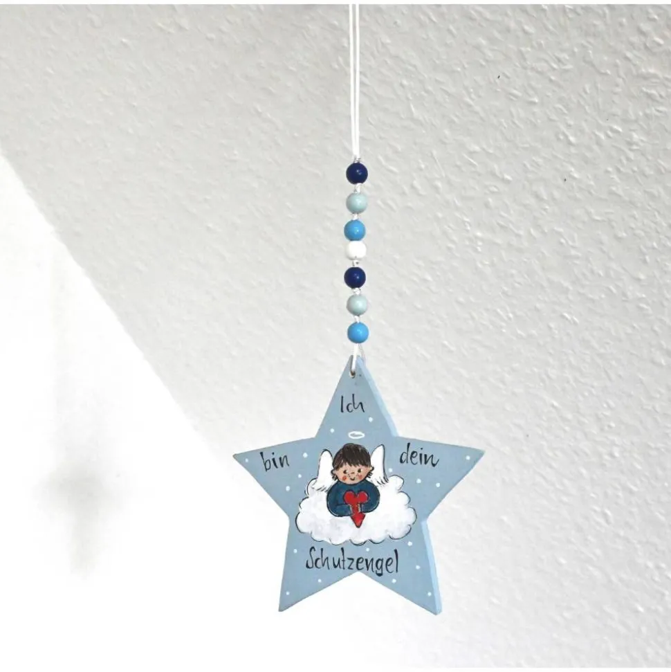 Süßer Schutzengel Stern für Jungs! Dieser zauberhafte Holzstern zum Aufhängen ist ein liebevoll handbemaltes Unikat und wird direkt nach Zahlungseingang versandkostenfrei verschickt.