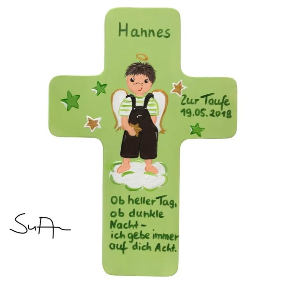 Schutzengelkreuz für Jungs Taufkreuz, Kinderkreuz Geschenk zur Taufe / Geburt