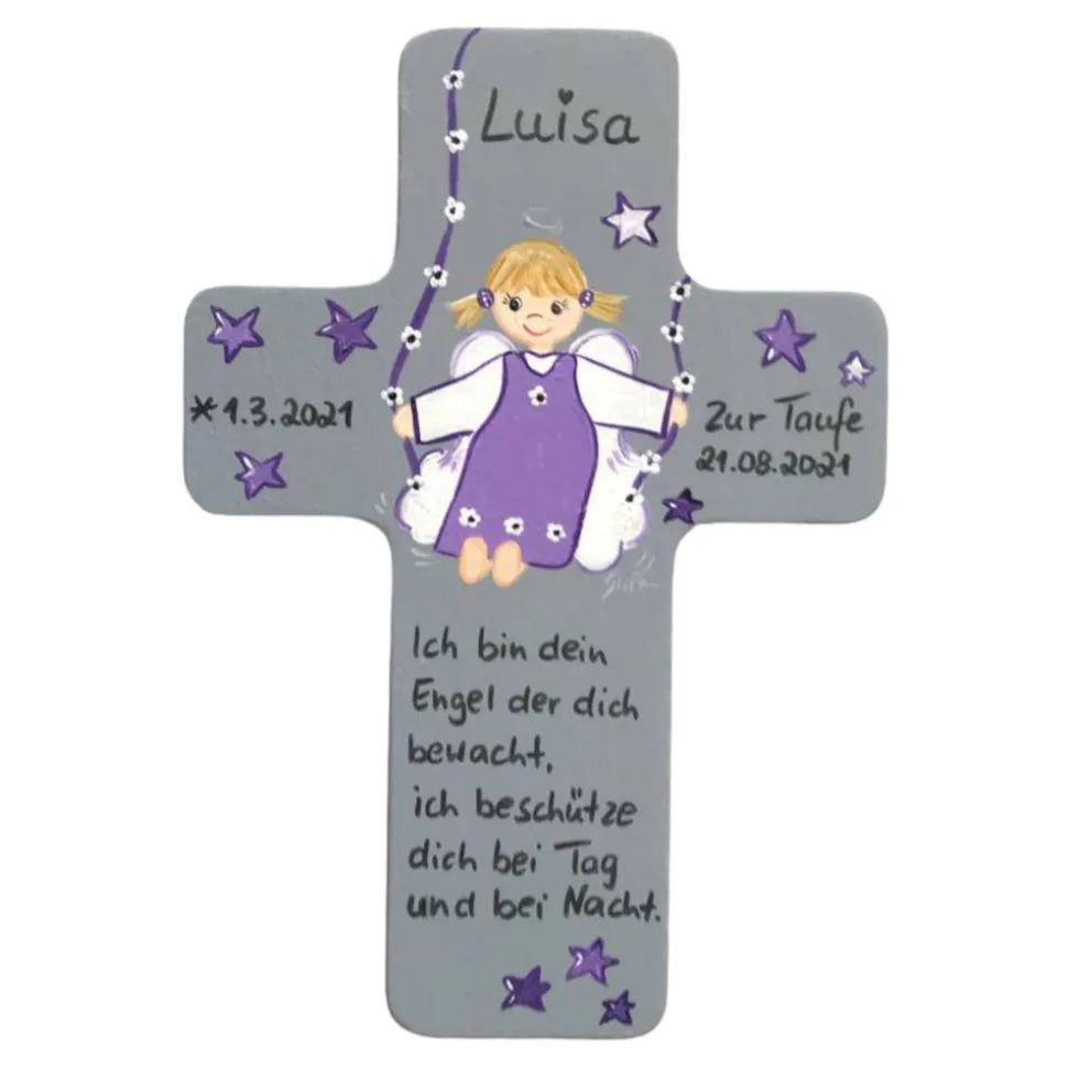 Schutzengelkreuz für Mädchen Taufkreuz, Kinderkreuz Geschenk zur Taufe / Geburt