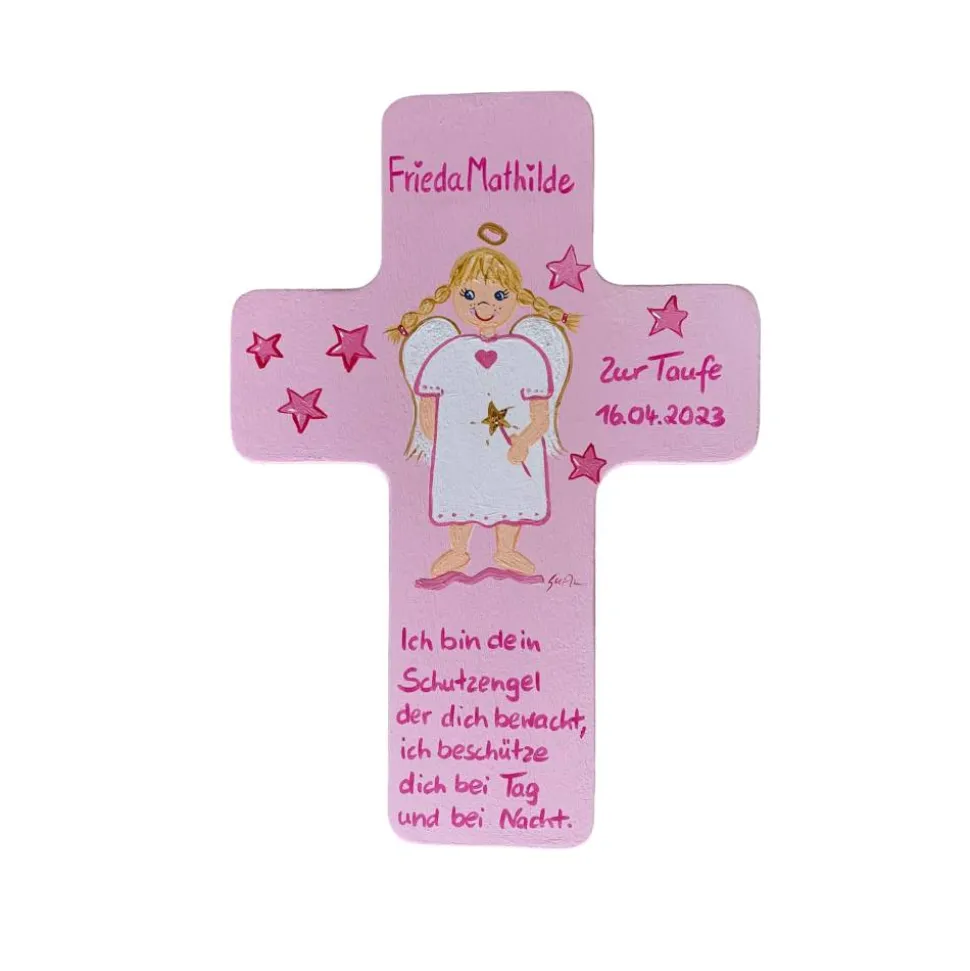 Schutzengelkreuz Mädchen Taufkreuz, Kinderkreuz Geschenk zur Taufe / Geburt