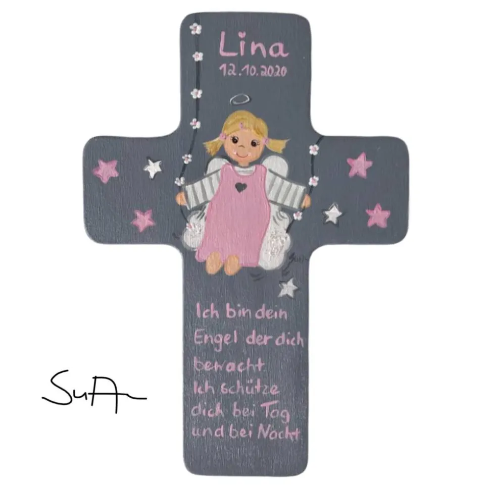 Schutzengelkreuz  Mädchen Taufkreuz, Kinderkreuz Geschenk zur Taufe / Geburt