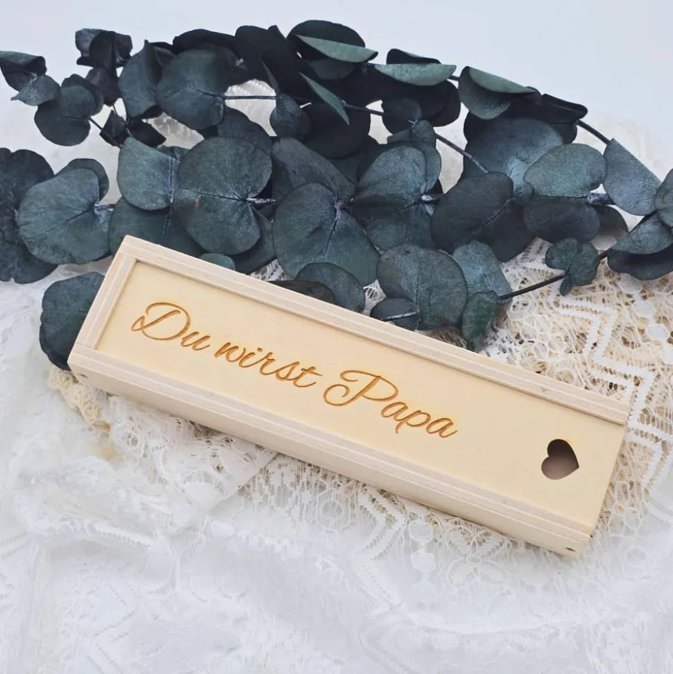 Ideal als Geschenk für den Partner oder die Familie, um die freudige Nachricht stilvoll zu präsentieren. Hochwertige Materialien und eine ansprechende Gestaltung machen diese Box zu einem einzigartigen Andenken.