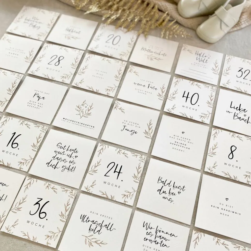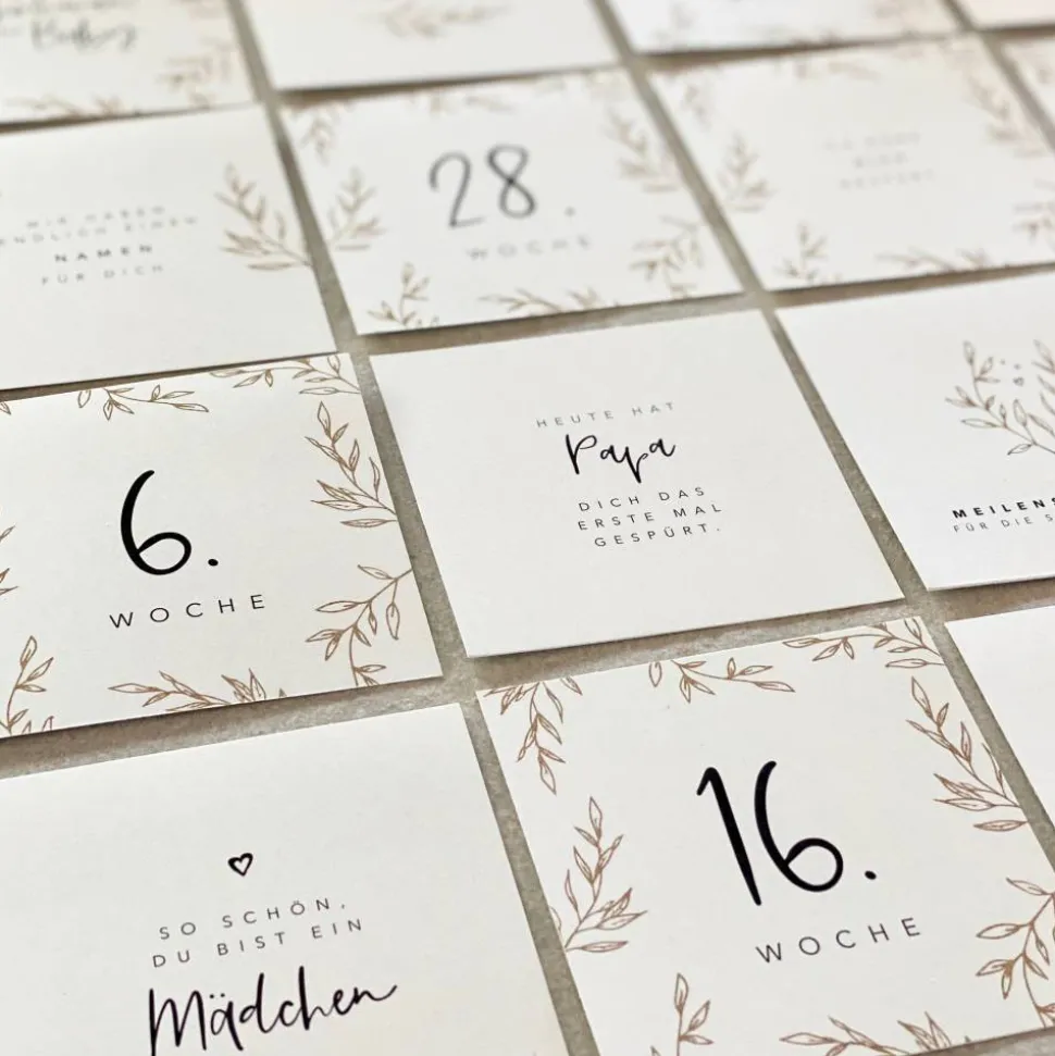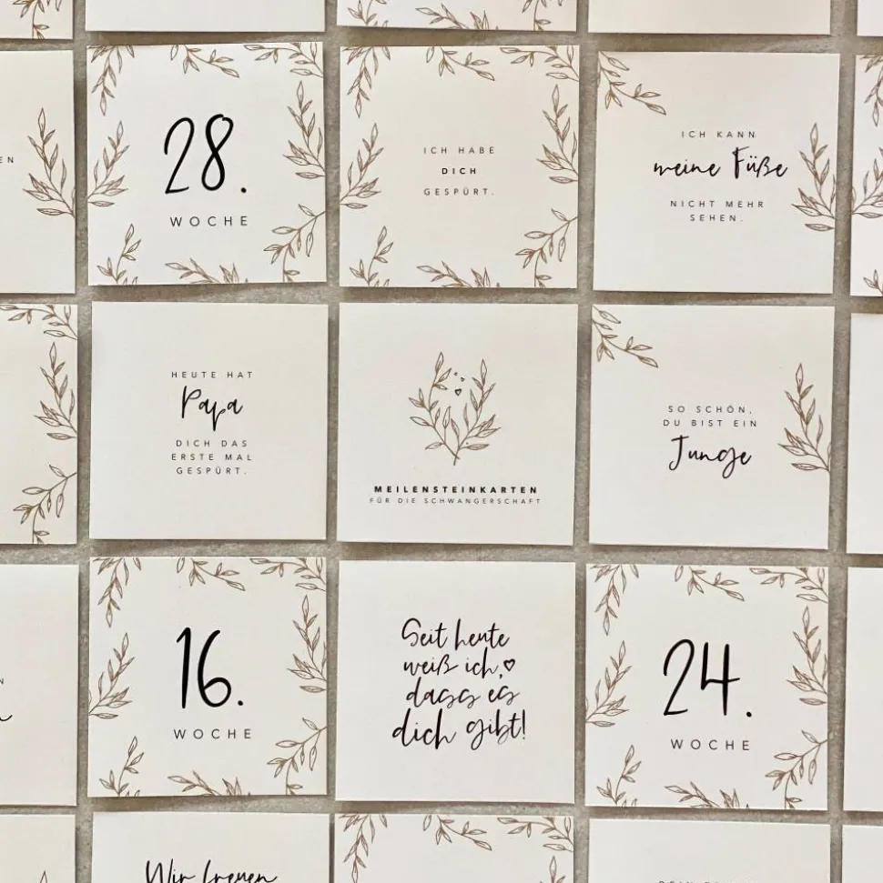 Die Schwangerschaft ist eine so besondere Zeit. Leider vergisst man auch viele Ereignisse sehr schnell wieder. Diese Meilensteinkarten sind eine schöne Möglichkeit, ganz besondere Augenblicke festzuhalten.