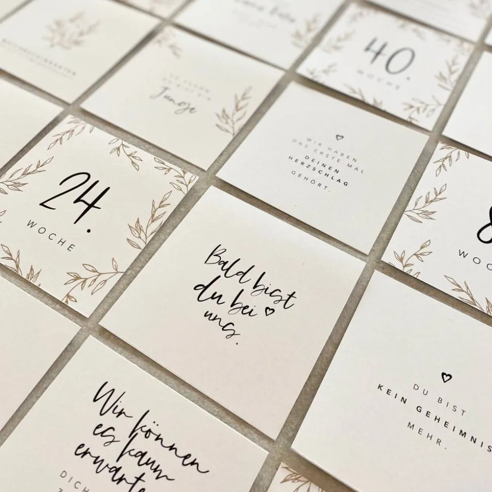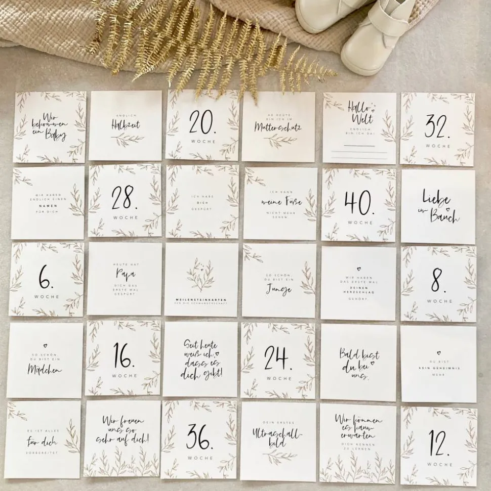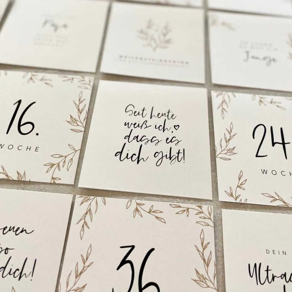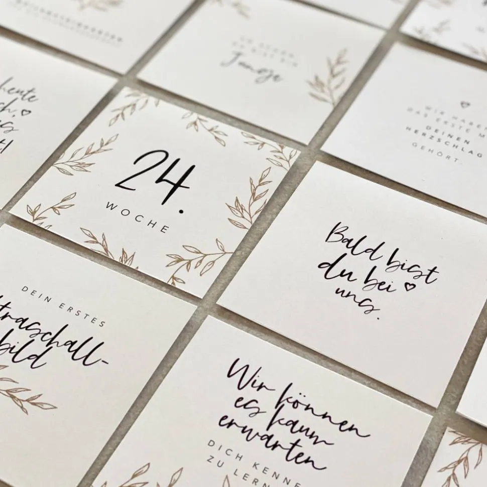 Die Schwangerschaft ist eine so besondere Zeit. Leider vergisst man auch viele Ereignisse sehr schnell wieder. Diese Meilensteinkarten sind eine schöne Möglichkeit, ganz besondere Augenblicke festzuhalten.