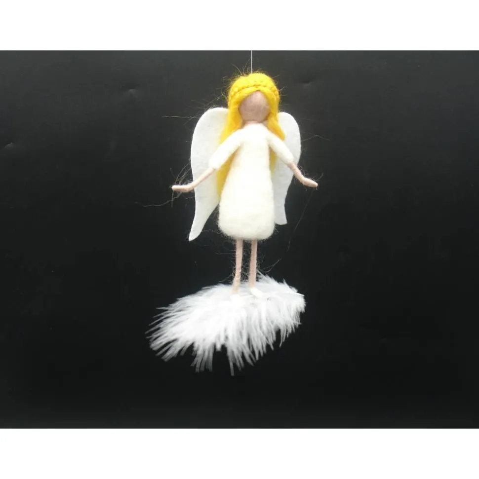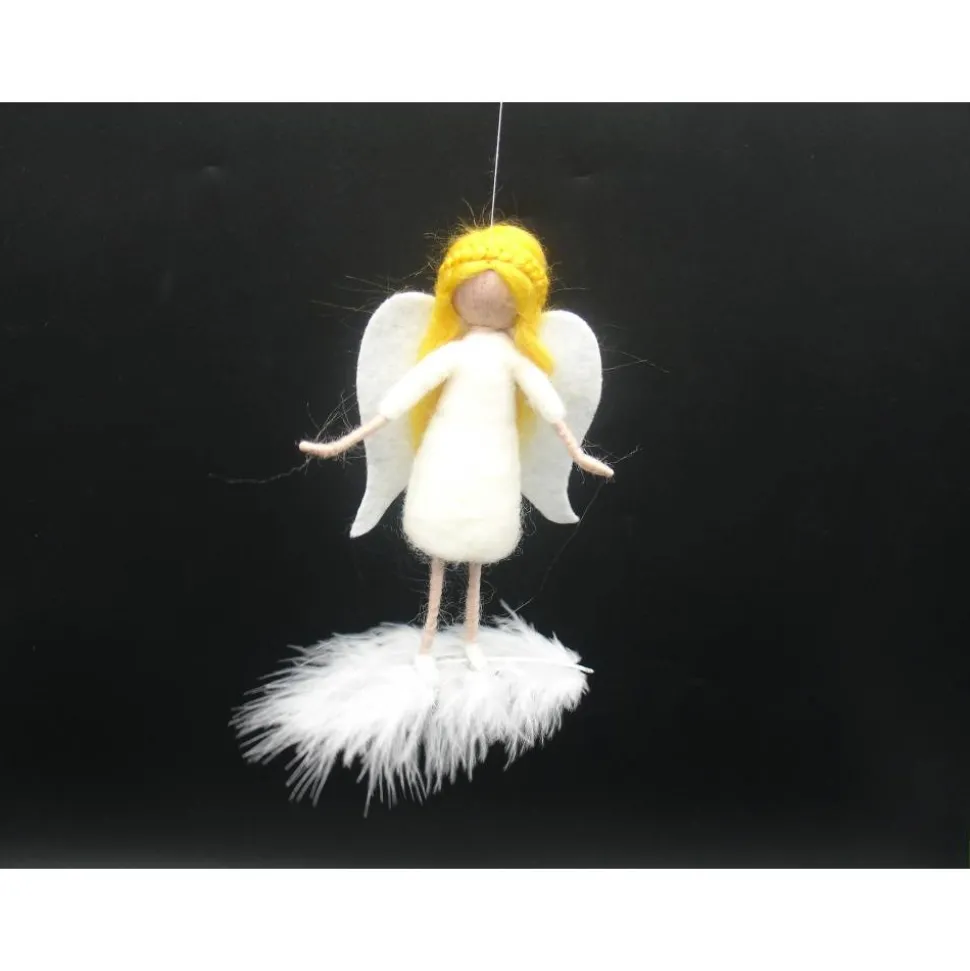 ein zartes kleines Engelchen schwebt auf einer weißen Feder. Eine zauberhafte Dekoration in der Weihnachtszeit oder ein passendes Geschenk zur Taufe oder zur Geburt. Der kleine Engel ist mit der Nadel gefilzt und ca 12 cm groß. Gerne kann der Engel auch mit einer anderen Haarfarbe oder Frisur angefertigt werden – dies beschreiben Sie bitte kurz in einer Nachricht an mich – Vielen Dank!