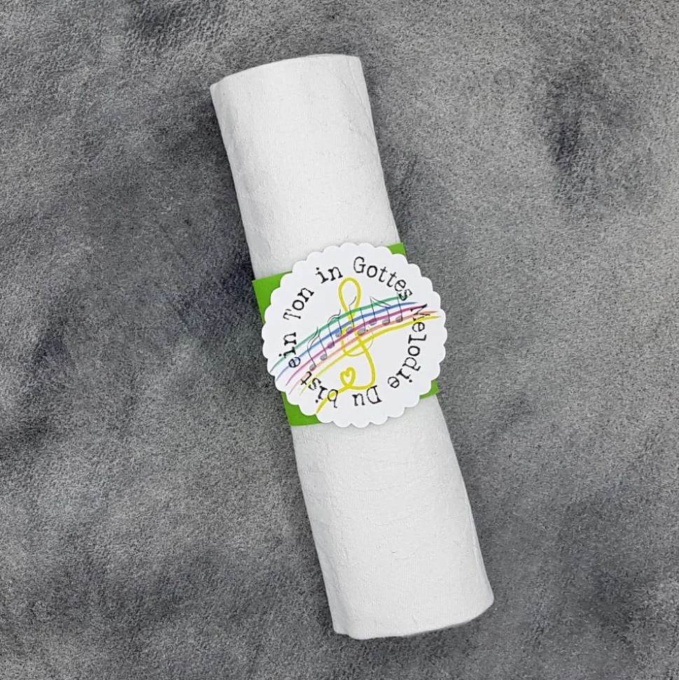 Feiere die Kommunion mit einem besonderen Akzent: Der Serviettenhalter zum Thema „Du bist ein Ton in Gottes Melodie“ verleiht deiner Festtafel eine persönliche Note. Wähle aus verschiedenen Farben (siehe Bild), um perfekt zu deiner Dekoration zu passen.