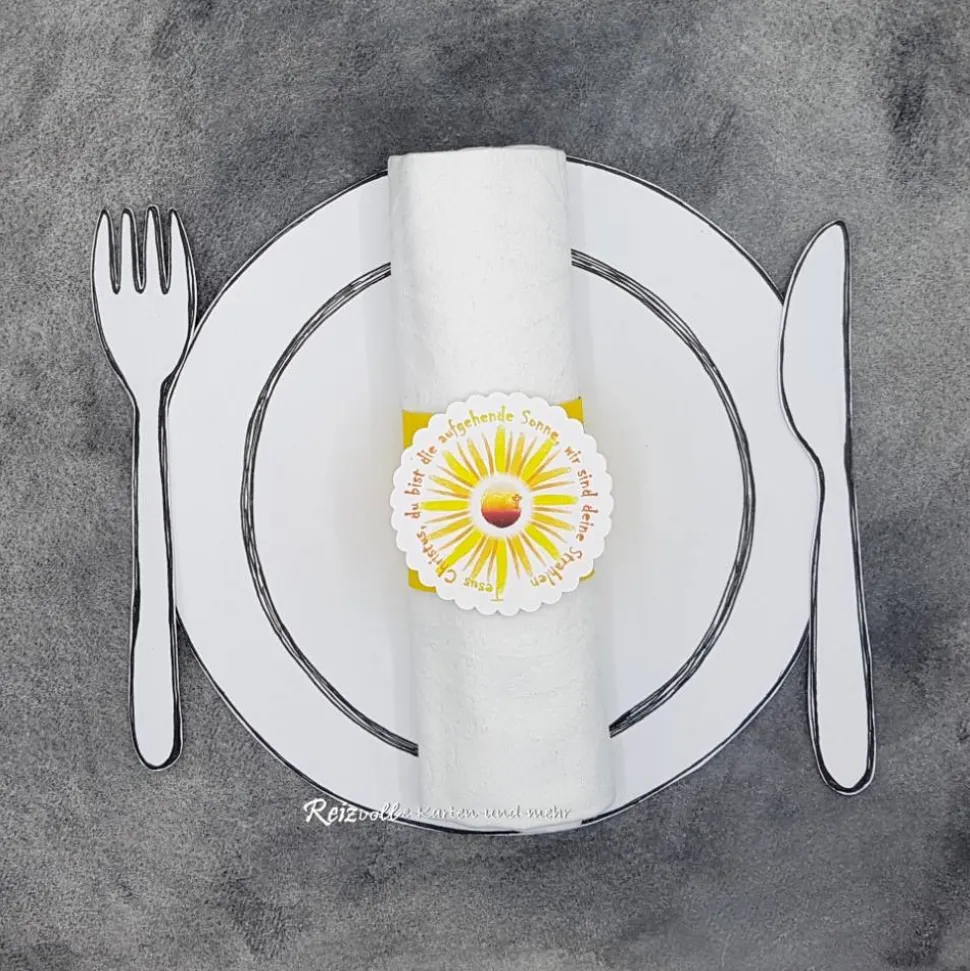 Entdecke den einzigartigen Serviettenhalter zur Kommunion mit dem Thema: „Jesus Christus, du bist die aufgehende Sonne, wir sind deine Strahlen“.