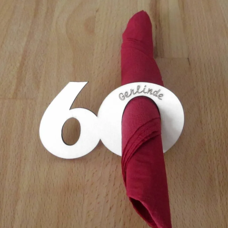 Dieser Jubiläum-Serviettenring mit ca. 10 cm Breite eignet sich perfekt für runde Geburtstage, Jahrestage oder silberne und goldene Hochzeitsfeiern. Ihre Gäste werden staunen!