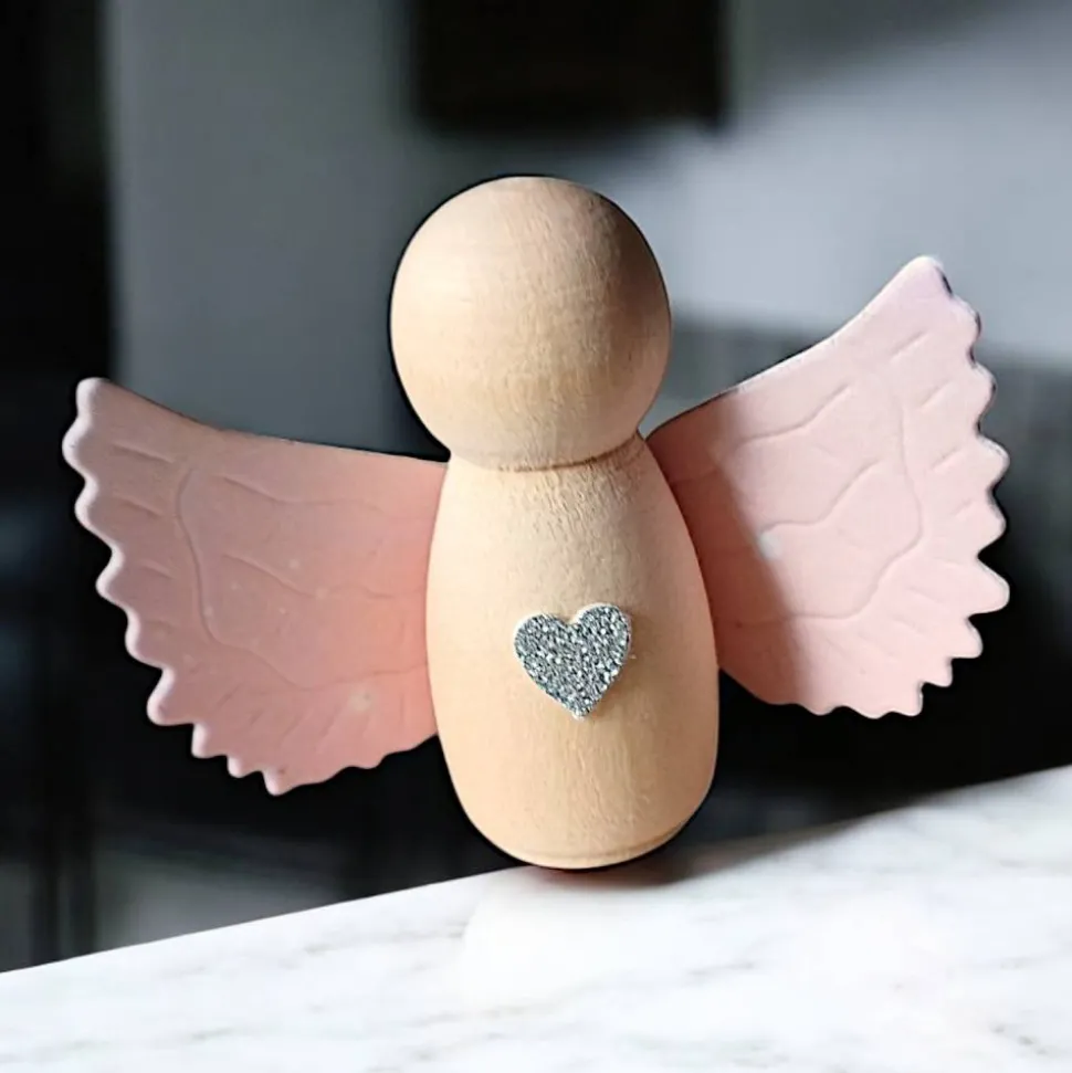 Entdecke das einzigartige Set aus 10 handgefertigten Holz Engeln mit bunten Flügeln – die perfekte Tischdekoration und ein liebevolles Gastgeschenk für Taufe, Konfirmation, Kommunion, Hochzeit oder Geburtstag. Jeder Engel wird von mir persönlich gefertigt, erhält einen naturbelassenen Holzrohling, bunte Flügel aus Motivkarton Feenstaub (Farben von rosa bis blau) und ein zartes Herzchen auf der Brust.