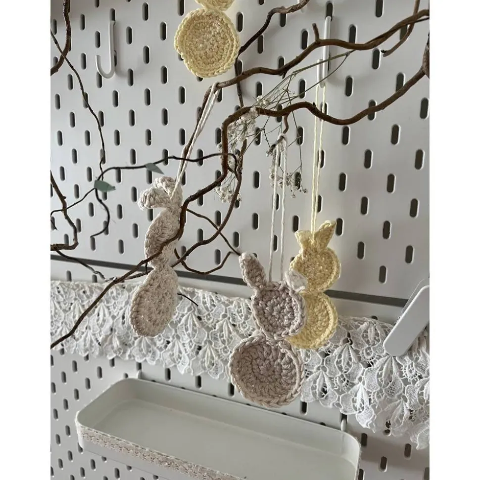Die Hasen-Anhänger sind in minimalistischem Design gehäkelt für eine stylische FrühlingsDeko.