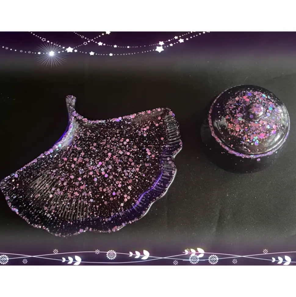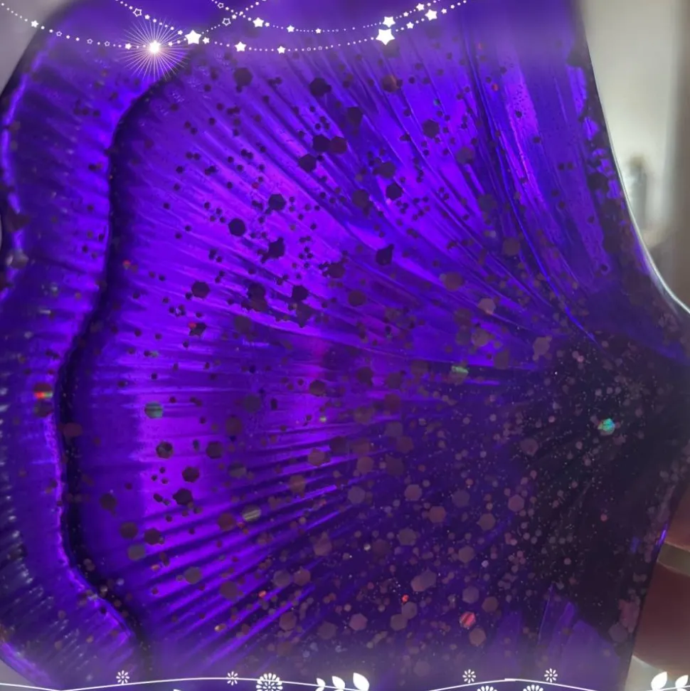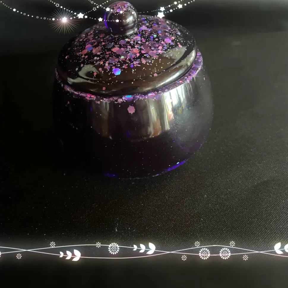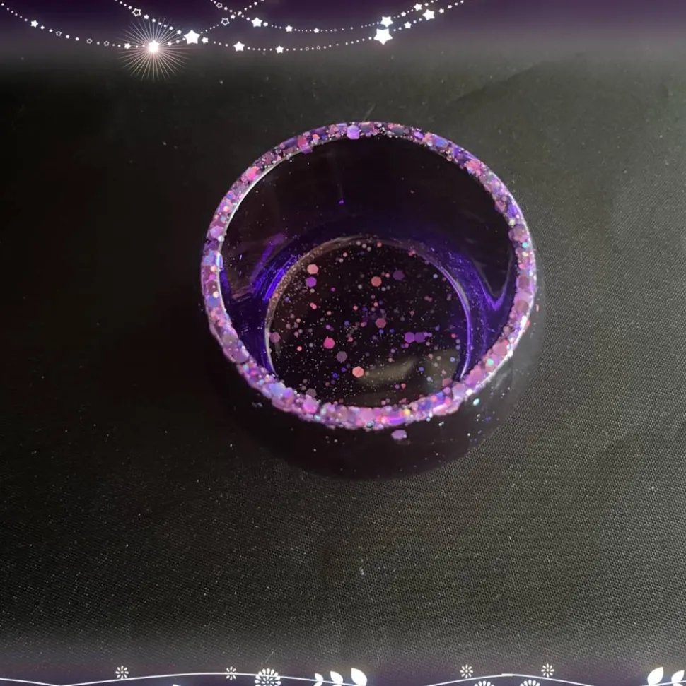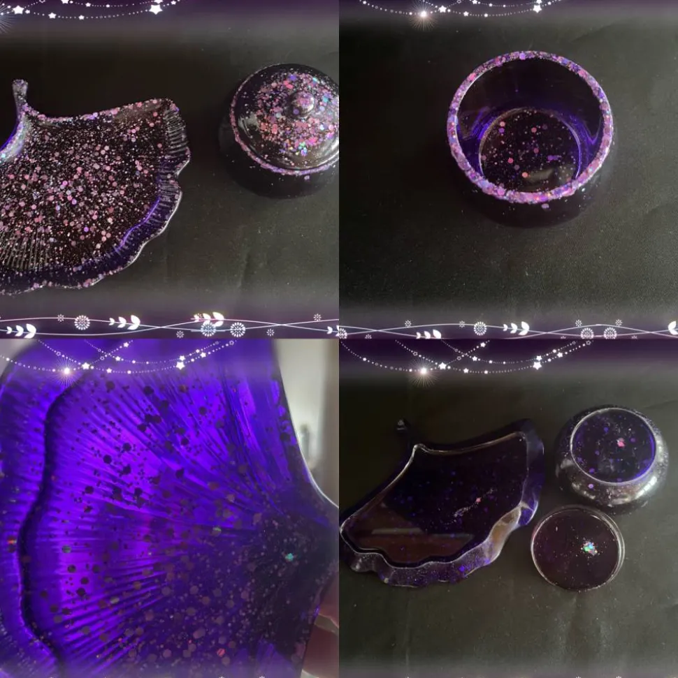Das Resin habe ich in Lila und Glitzer eingefärbt. Das Material ist stabil und langlebig, was eine langfristige Nutzung ermöglicht.