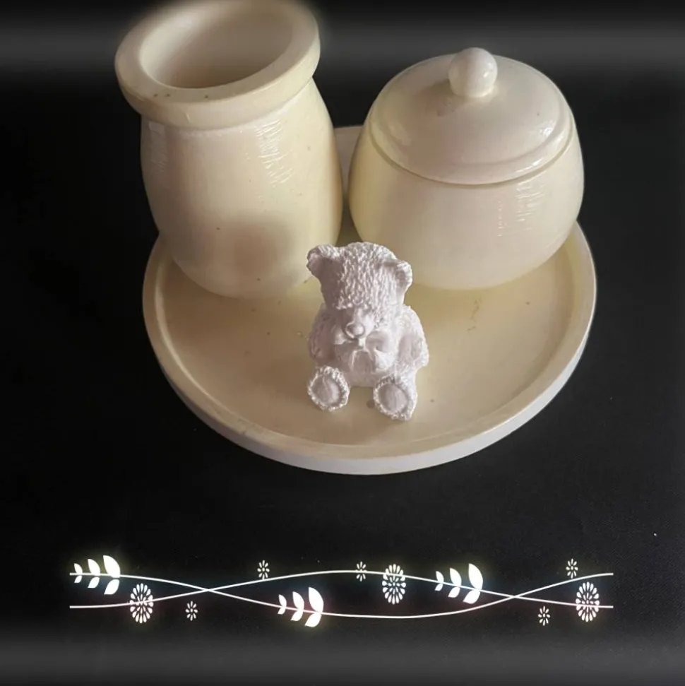 Das Raysin habe ich mit gelb eingefärbt und der Teddy ist weiß. Das Material ist stabil und langlebig, was eine langfristige Nutzung ermöglicht. Holen Sie sich mit diesem Set eine stilvolle und gemütliche Atmosphäre in Ihr Zuhause.