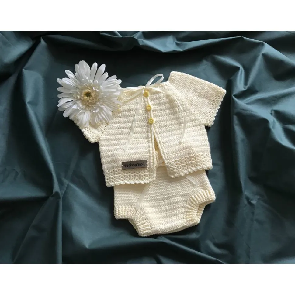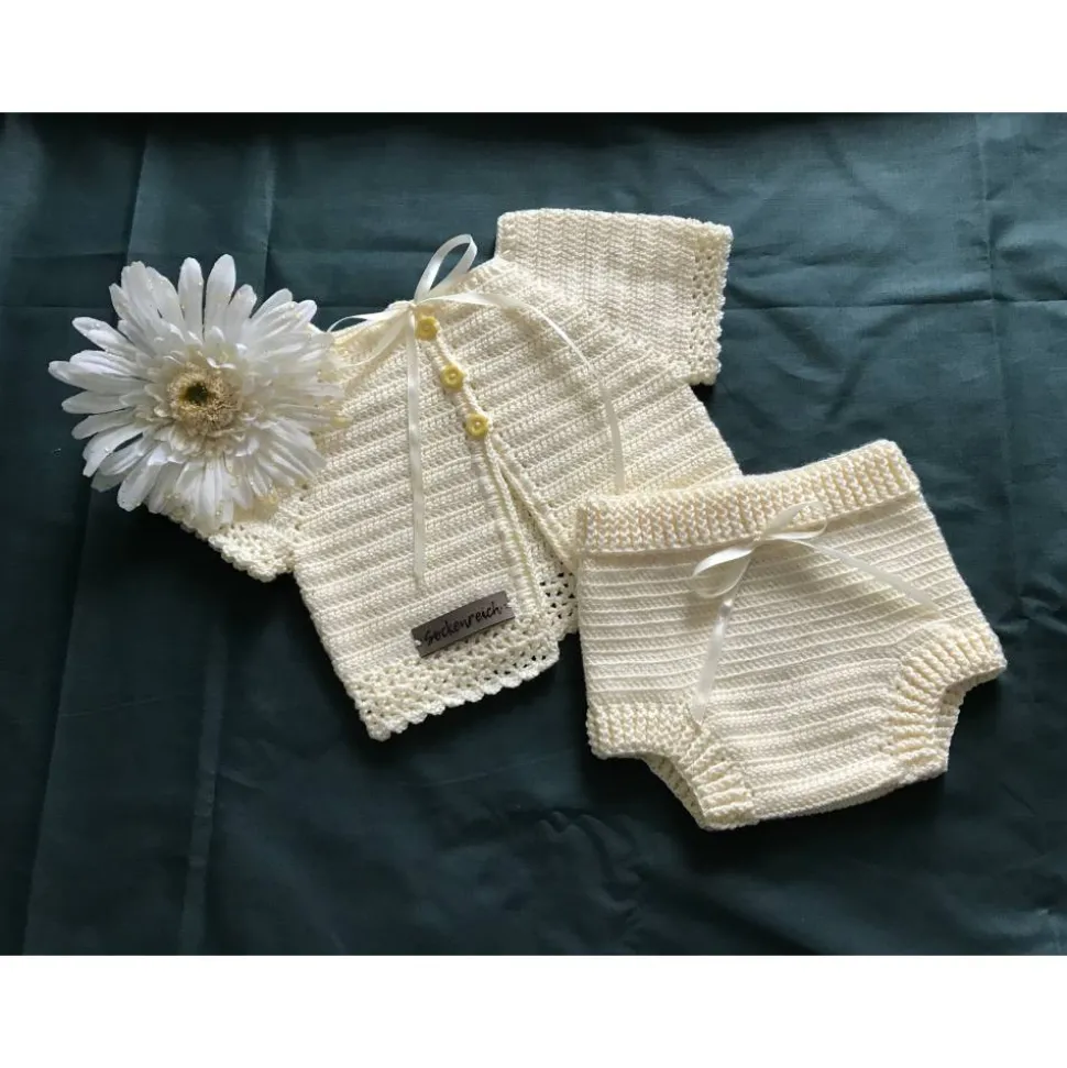 Entdecke das bezaubernde Set Missi – ein handgefertigtes Babyset bestehend aus einem Jäckchen und einer kurzen Hose in der Größe ca. 56-62. Dieses süße Set ist die perfekte Wahl für große Auftritte wie Taufe, Hochzeit oder jeden anderen festlichen Anlass.