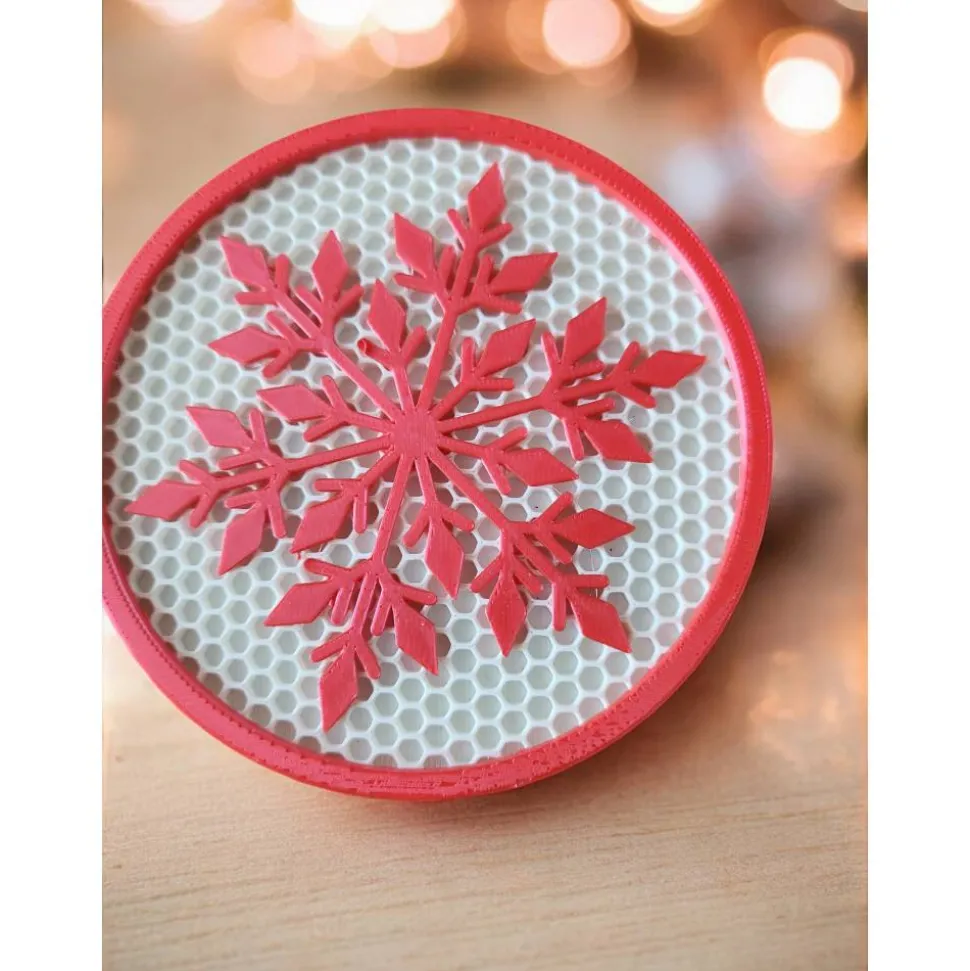 Dieses charmante Set aus vier festlichen Untersetzern und einem passenden Halter bringt weihnachtliche Stimmung auf jeden Tisch. Gefertigt im modernen 3D-Druck-Verfahren aus langlebigem ABS-Kunststoff, bestechen die Untersetzer durch ihr detailreiches Schneeflocken-Design.