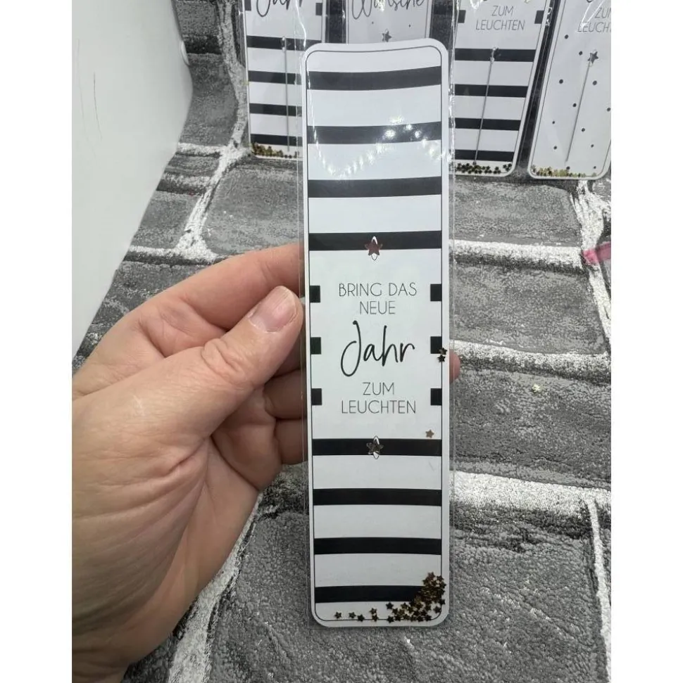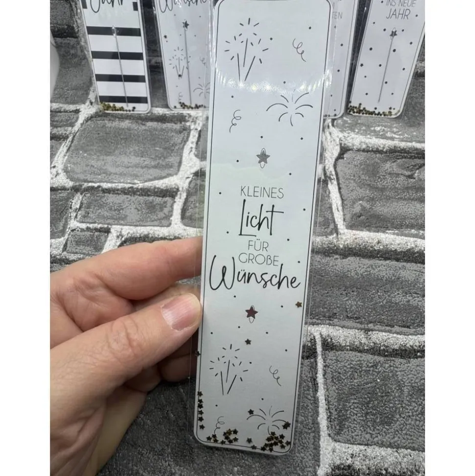 Einer 200g Papierkarte mit Aufdruck, in einer Tüte mit goldenen Sternchen, Ohne Wunderkerzen.