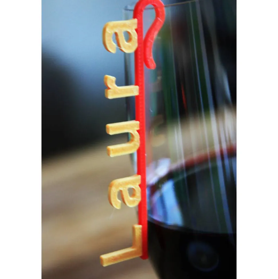 Die Anbringung ist leicht, das Namensschild kann an das Weinglas gehangen werden und hält ohne spezielle Hilfsmittel wie Kleber o. Ä.