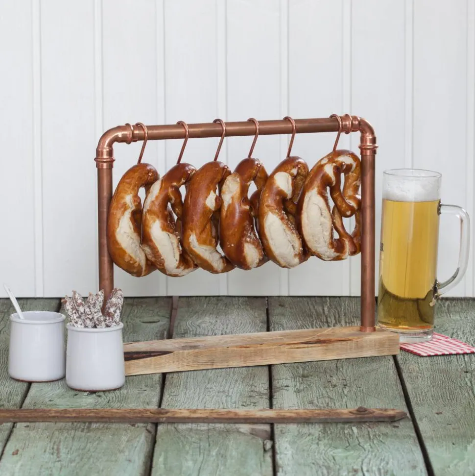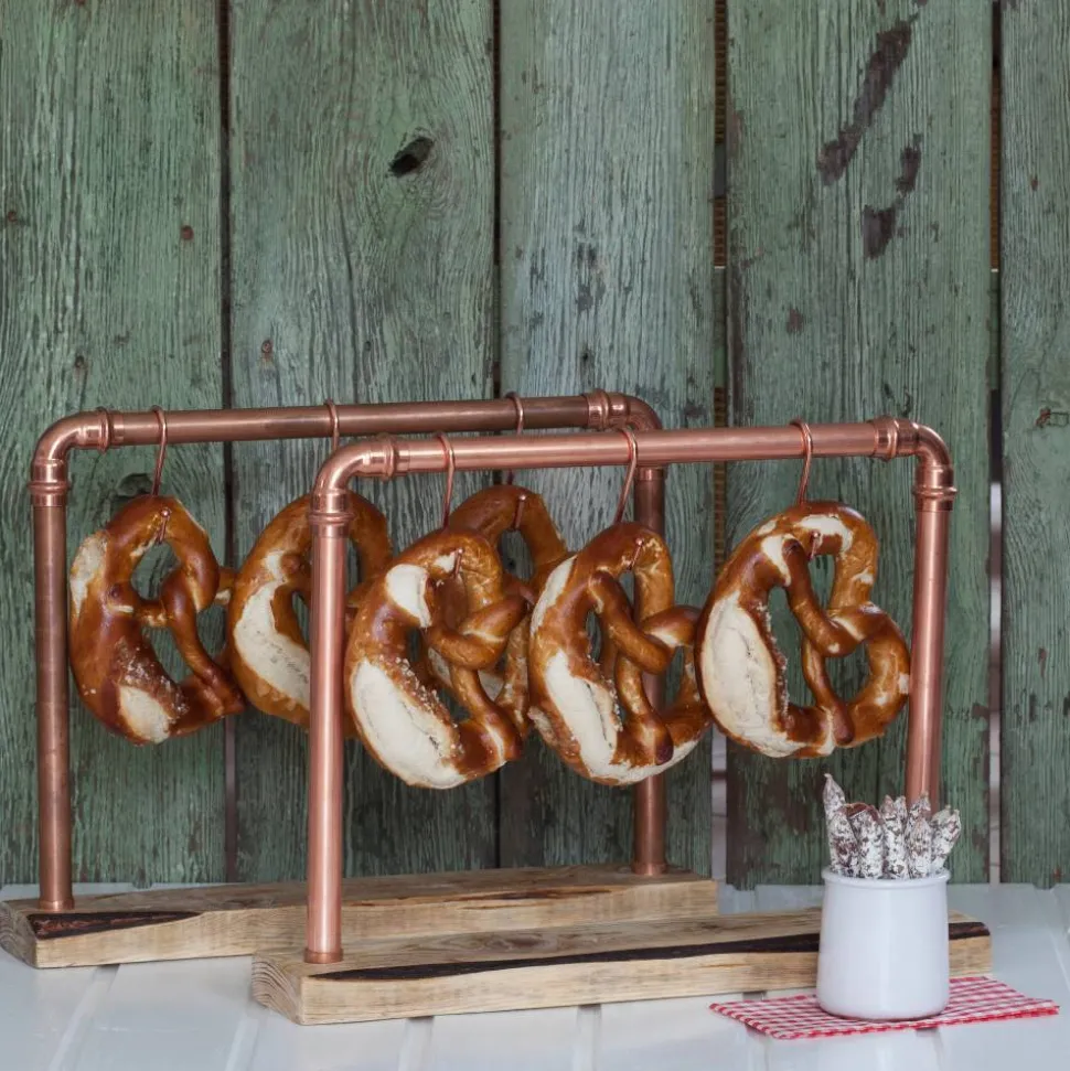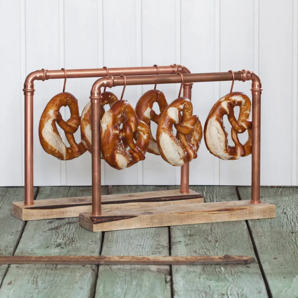 Unser rustikaler GNOSJÖ – Snackständer aus Kupferrohr auf einem Holzsockel wird das absolute Highlight auf deiner Hochzeitsfeier. Der Aufsteller bietet Platz für bis zu sechs leckere Brezeln, knackige Würstchen oder andere Snacks. Der GNOSJÖ – Snackständer sieht nicht nur auf der Hochzeit total angesagt aus, er eignet sich auch hervorragend für die nächste Gartenfeier, das Wirtshaus oder den Biergarten.
