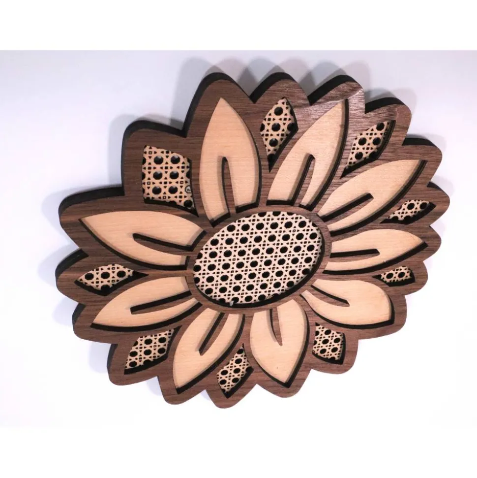 Erwecken Sie Ihre Räume zum Leben und bringen Sie die strahlende Schönheit der Natur mit der Sonnenblume aus Nuss- und Buchen-Sperrholz als Wanddekoration in Ihr Zuhause. Bestellen Sie noch heute und verwandeln Sie Ihre Wände in eine inspirierende Leinwand der Schönheit.