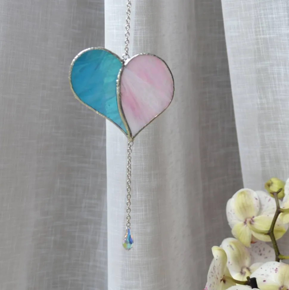 Das Herz steht für Liebe, Freundschaft und Geborgenheit. Durch die Kombination der Farben Türkis und Rosa entsteht ein wunderschönes Gleichgewicht zwischen Ruhe und Wärme. Dieser Sonnenfänger erinnert an besondere Menschen und strahlt positive Energie aus.