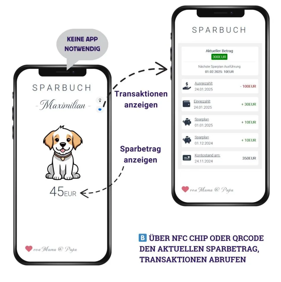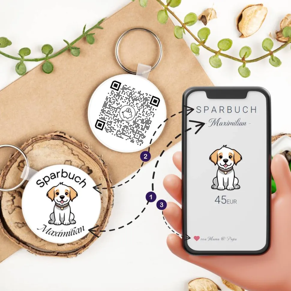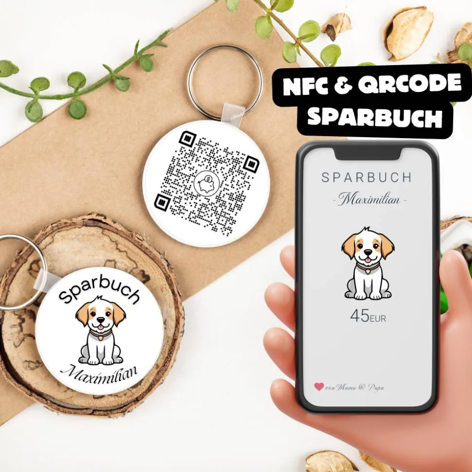 Sparbuch als Anhänger | NFC & QrCode | Personalisiertes Geldgeschenk | Verschiedene Motive