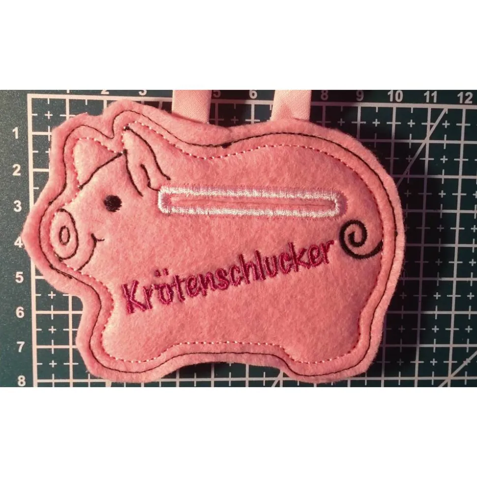 Entdecke das Sparschwein Krötenschlucker Rosa – dein liebevoll besticktes Schweinchen aus hochwertigem Kunstfilz. Dieses Unikat wird von Hand ausgeschnitten und begeistert als originelle Deko oder als kreativer Geschenkanhänger für Geldgeschenke und Gutscheine.