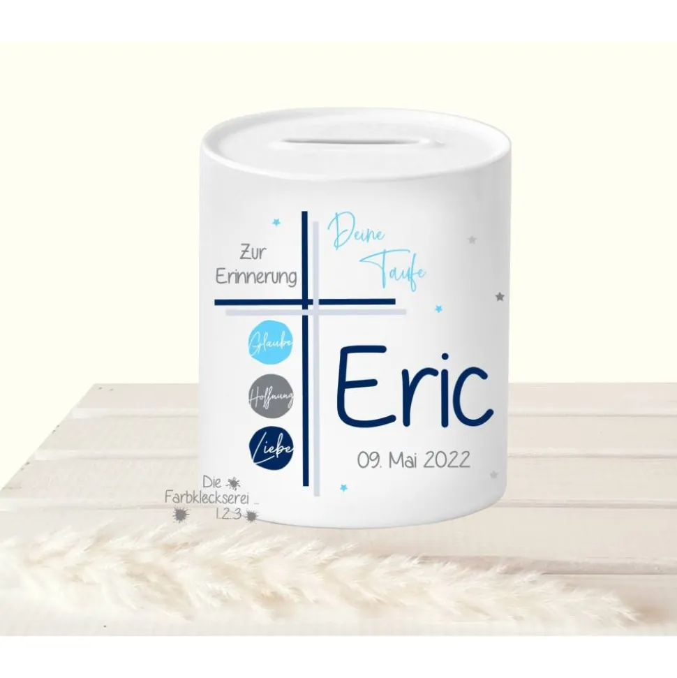 Tolles Sparschwein zur Taufe mit dem Namen des Taufkindes.
