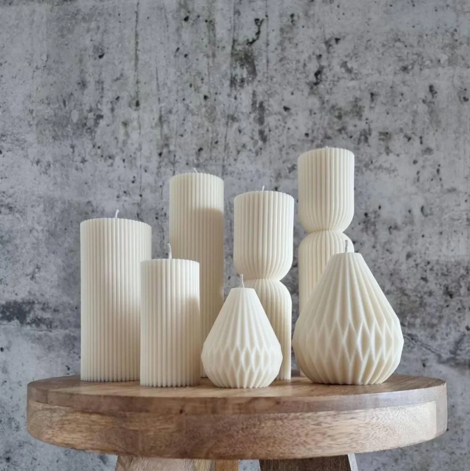 3 gerippte Säulenkerzen: