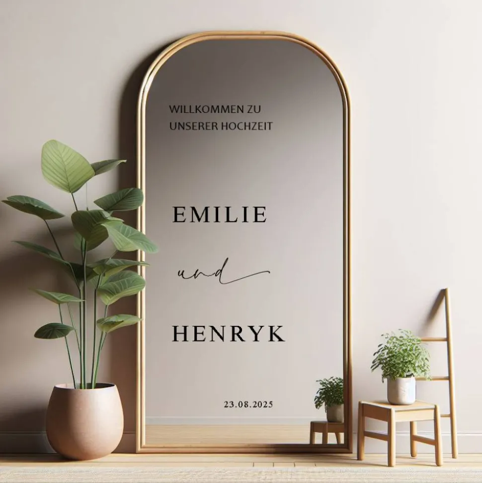 Auf Wunsch können wir „Willkommen zu unserer Hochzeit“ auch auf einer anderen Sprache (bspw. Englisch oder Türkisch) vorbereiten.