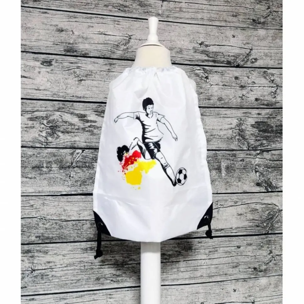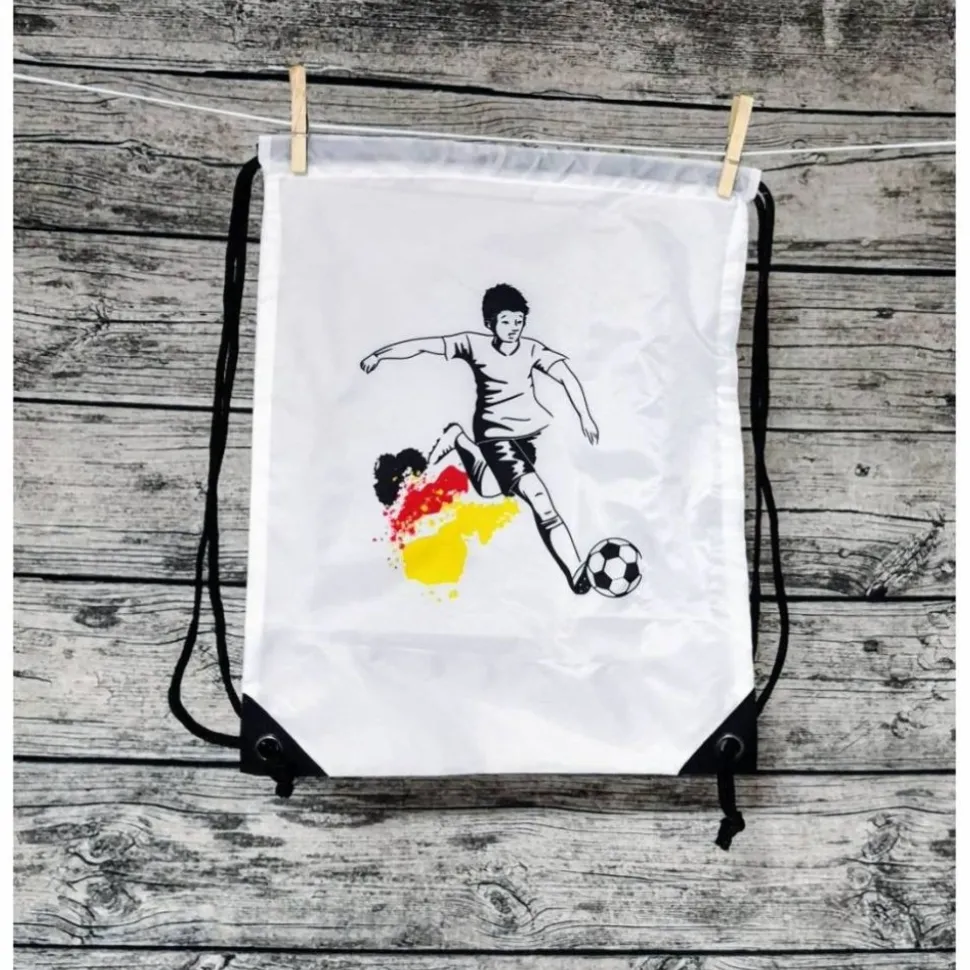 Der Zugbeutel ist weiß und wurde von mir bedruckt. Er besteht aus 100% Polyester und kann gewaschen werden. Er hat ein Fassungsvermögen von ca. 12 Ltr.