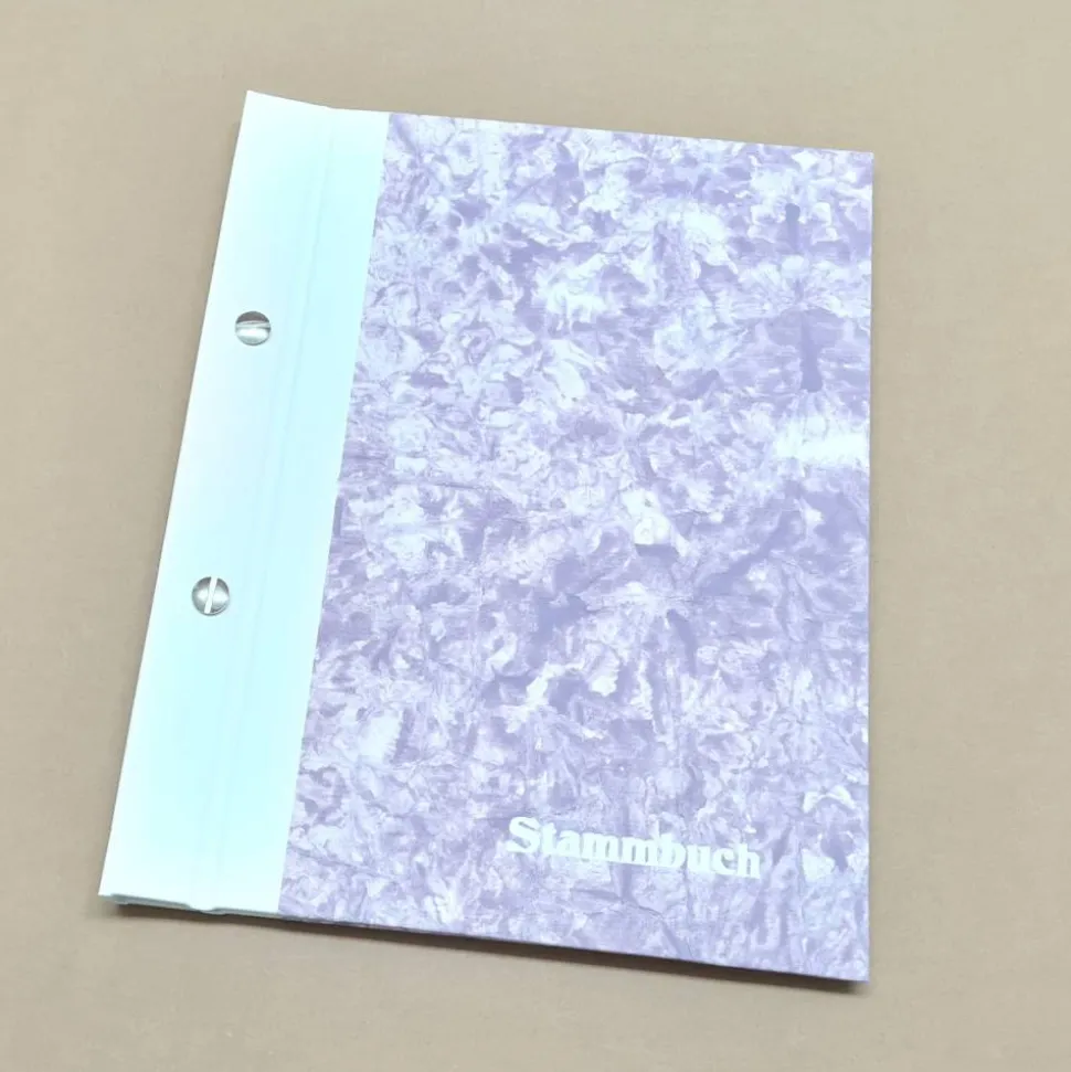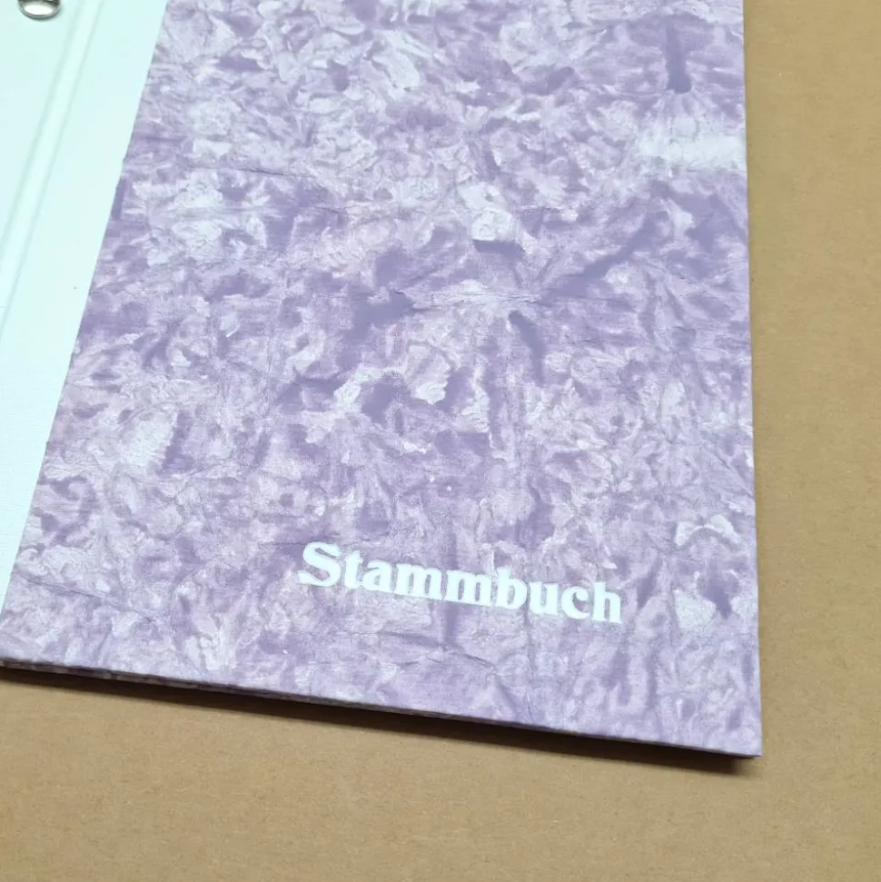 Der Schriftzug Stammbuch ist mit weißer Prägefolie im Heißprägeverfahren geprägt.
