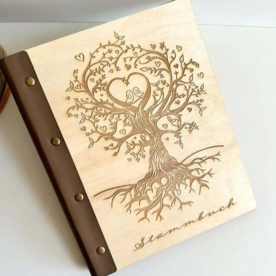 Das Stammbuch besteht aus formstabilen Birkenholz und besticht durch seine angenehme Haptik und einzigartiger Maserung – jedes Buchcover wird so zu einem absoluten Unikat.