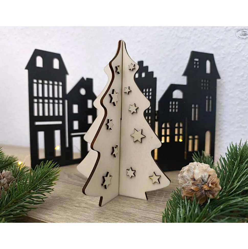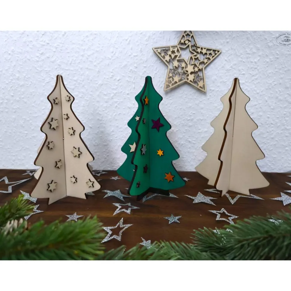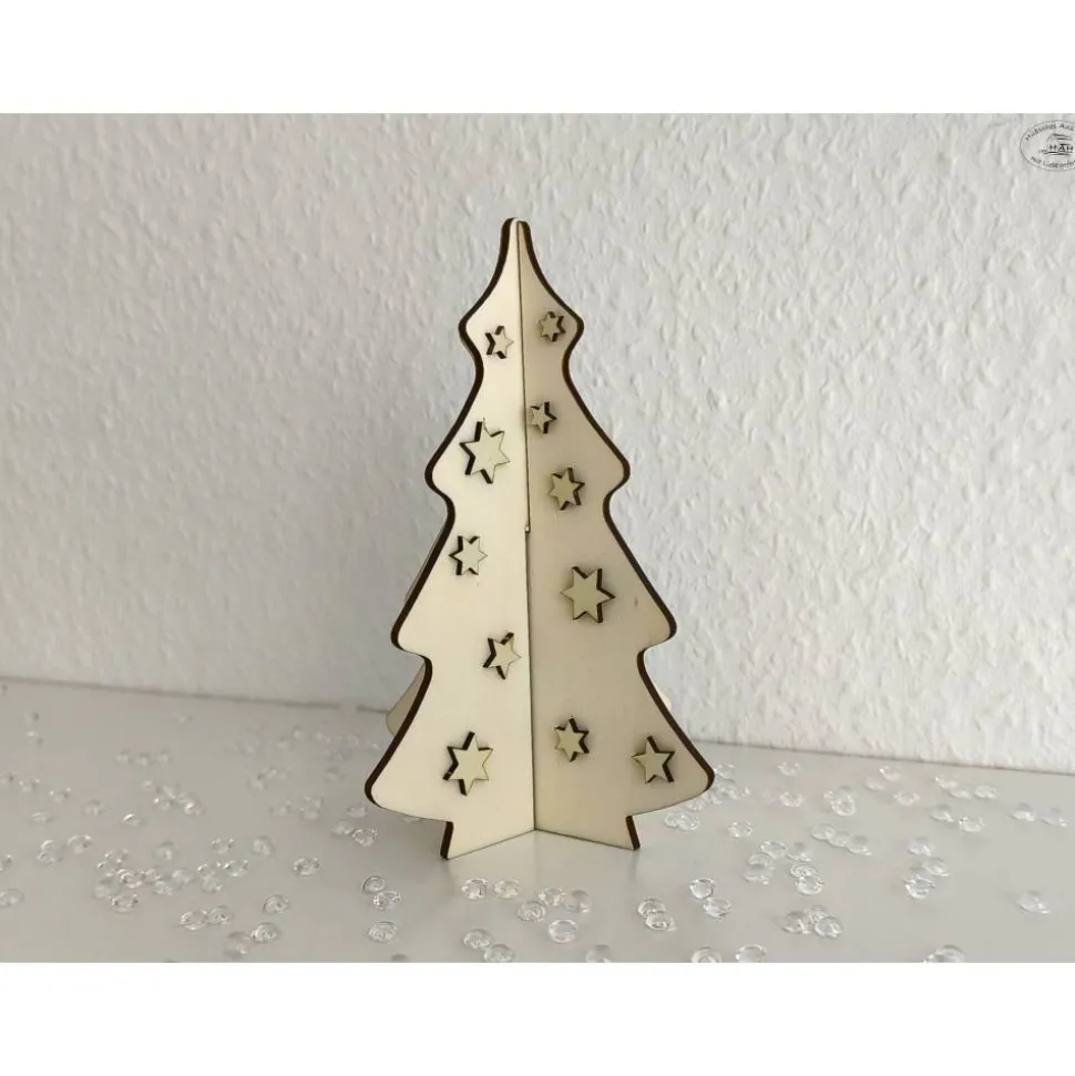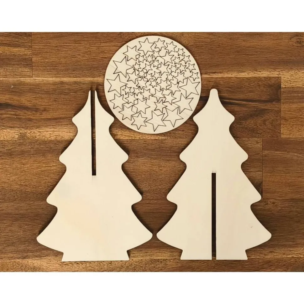 Der minimalistisch gestaltete Steck-Tannenbaum aus Pappelsperrholzbesteht aus zwei Teilen, die ganz einfach zusammengesteckt werden können und so einen stabilen Stand bekommen. Durch die Steckverbindung besitzt der Tannenbaum einen dreidimensionalen Effekt. Des Weiteren sind im Set kleine Holz-Sternchen enthalten.