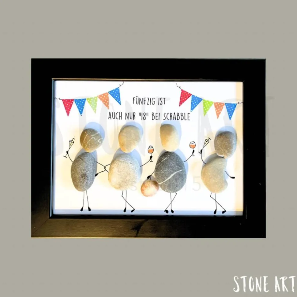 Feiere den 50. Geburtstag mit Humor! Das Steinbild „Fünfzig ist auch nur 18 bei Scrabble“ ist die perfekte Geschenkidee für alle, die das Älterwerden gelassen sehen und das Leben mit einem Lächeln genießen. Überrasche den Jubilar oder die Jubilarin mit einem Unikat, das individuell nach deiner Bestellung angefertigt wird.