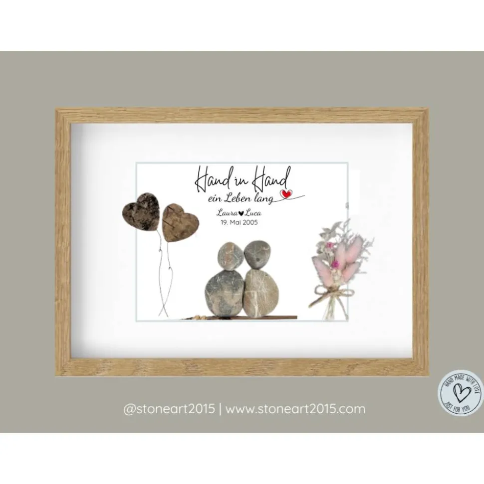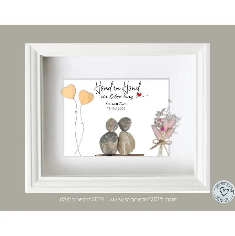 Entdecke das einzigartige Steinbild „Hand in Hand“ – das perfekte, personalisierbare Geschenk zur Hochzeit!