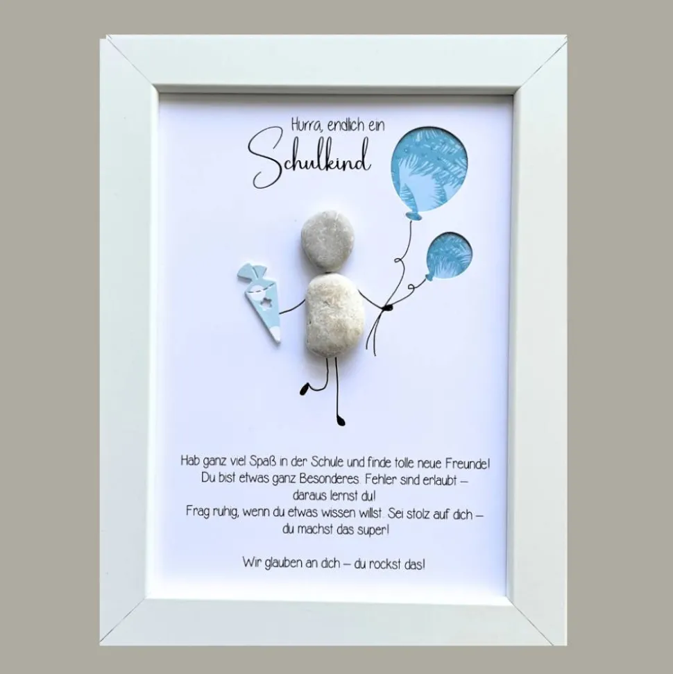 Dieses liebevoll gestaltete Steinbild ist das perfekte Geschenk zur Einschulung. Es eignet sich ideal, um Geldscheine stilvoll zu verschenken: Das integrierte Geldscheinfach macht das Präsent zu einem echten Highlight – auch ohne Geld ist das Bild ein dekorativer Hingucker, da ein farbenfrohes Papier für ein harmonisches Gesamtbild sorgt.