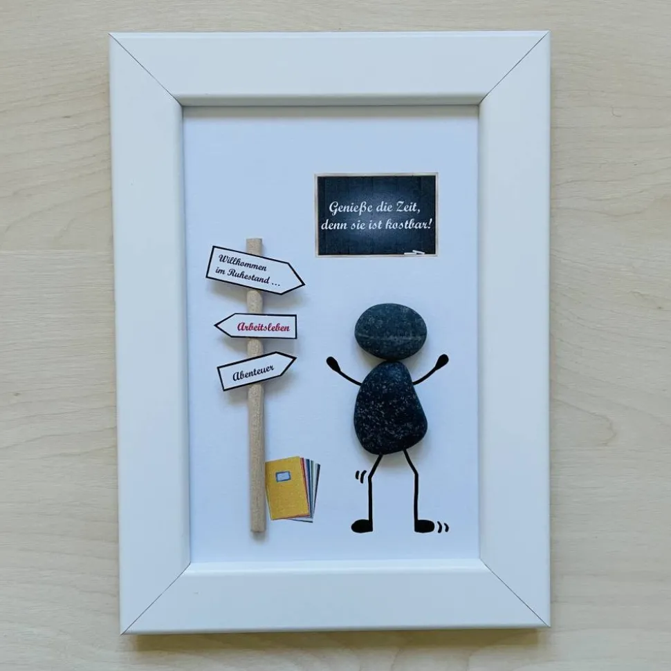 Ein wunderschönes handgefertigtes Steinbild zum Ruhestand – perfekt als persönliches Abschieds- und Dankeschön-Geschenk für Kollegin, Kollege, Lehrerin, Lehrer oder eine geschätzte Person, die in einen neuen Lebensabschnitt startet.
