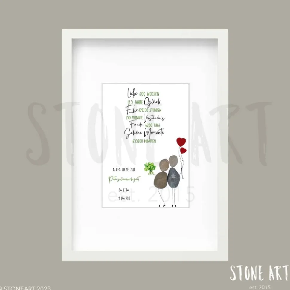 Feiere 12,5 Jahre Liebe und Würze mit einem einzigartigen, handgemachten Steinbild zur Petersilienhochzeit! Dieses Kunstwerk ist das perfekte Geschenk für Paare, Freunde oder Familienmitglieder, die den besonderen Meilenstein der Halbzeit zur Silberhochzeit begehen.