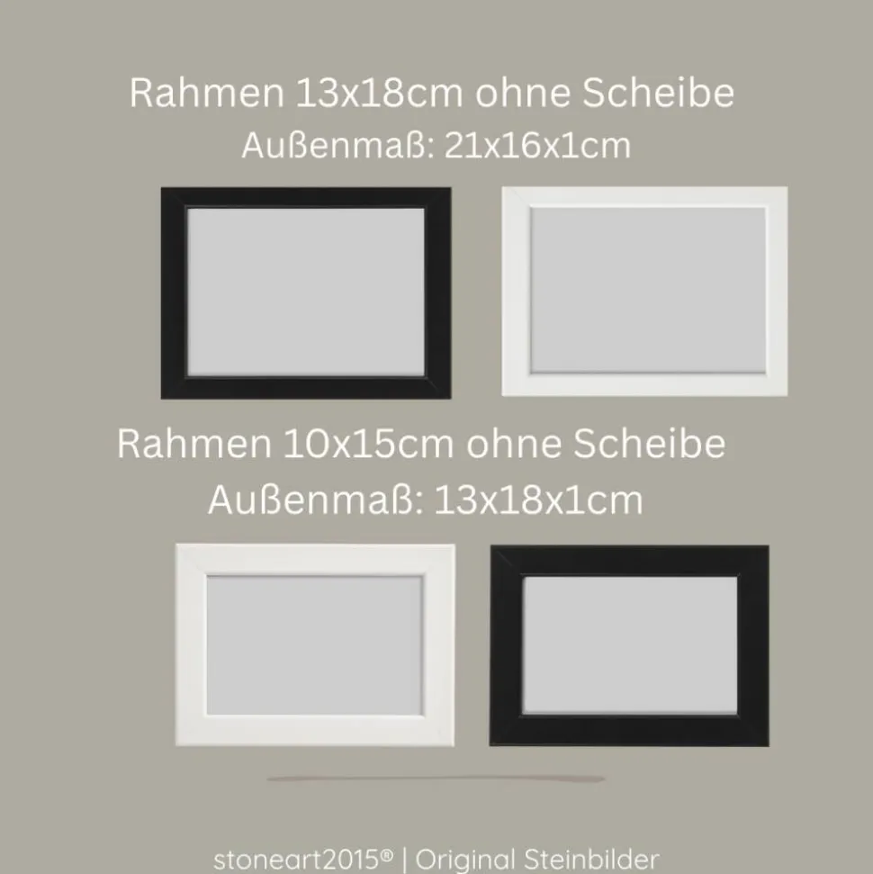 Die dargestellten Bilder sind lediglich Beispiele. Es gibt nicht für jeden Rahmen ein Beispielbild, da jedes Stück individuell gefertigt wird. Solltest Du Fragen zu unseren Rahmen haben, kontaktiere mich bitte jederzeit. Ich stehe Dir gerne zur Verfügung, um sicherzustellen, dass Du genau den Rahmen erhältst, den Du suchst.