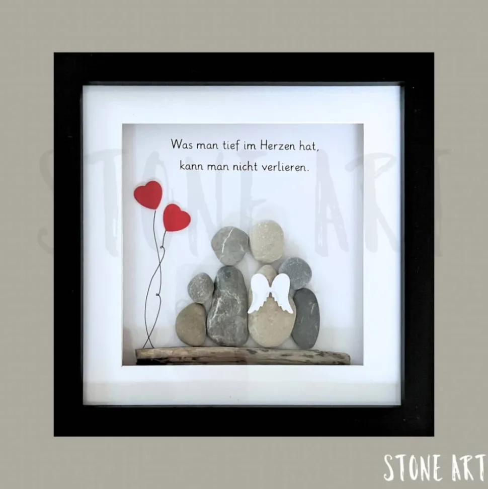 Ein einfühlsames Motiv aus echten Naturkieseln, das Trost spendet und die Erinnerung an einen besonderen Menschen bewahrt. Ein Geschenk, das zeigt: Du bist nicht allein in deiner Trauer, und die Liebe bleibt – tief im Herzen, für immer.