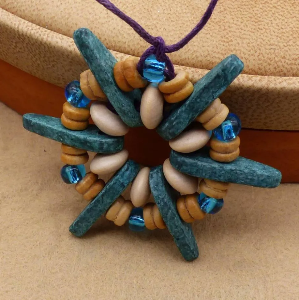 Die Spitzen der Sterne sind griechische Keramikperlen. Die Ringe sind aus Holz und/oder Acrylperlen.