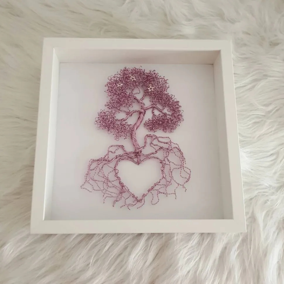 Speziell dafür habe dieses Drahtbaum Design entworfen. Ich verwende für den Drahtbaum rund 36 Meter Aluminiumdraht. Und einen 3D Bilderrahmen. Hier haben Sie die Möglichkeit weitere kleiner Erinnerungen in dem Rahmen zu verwahren.