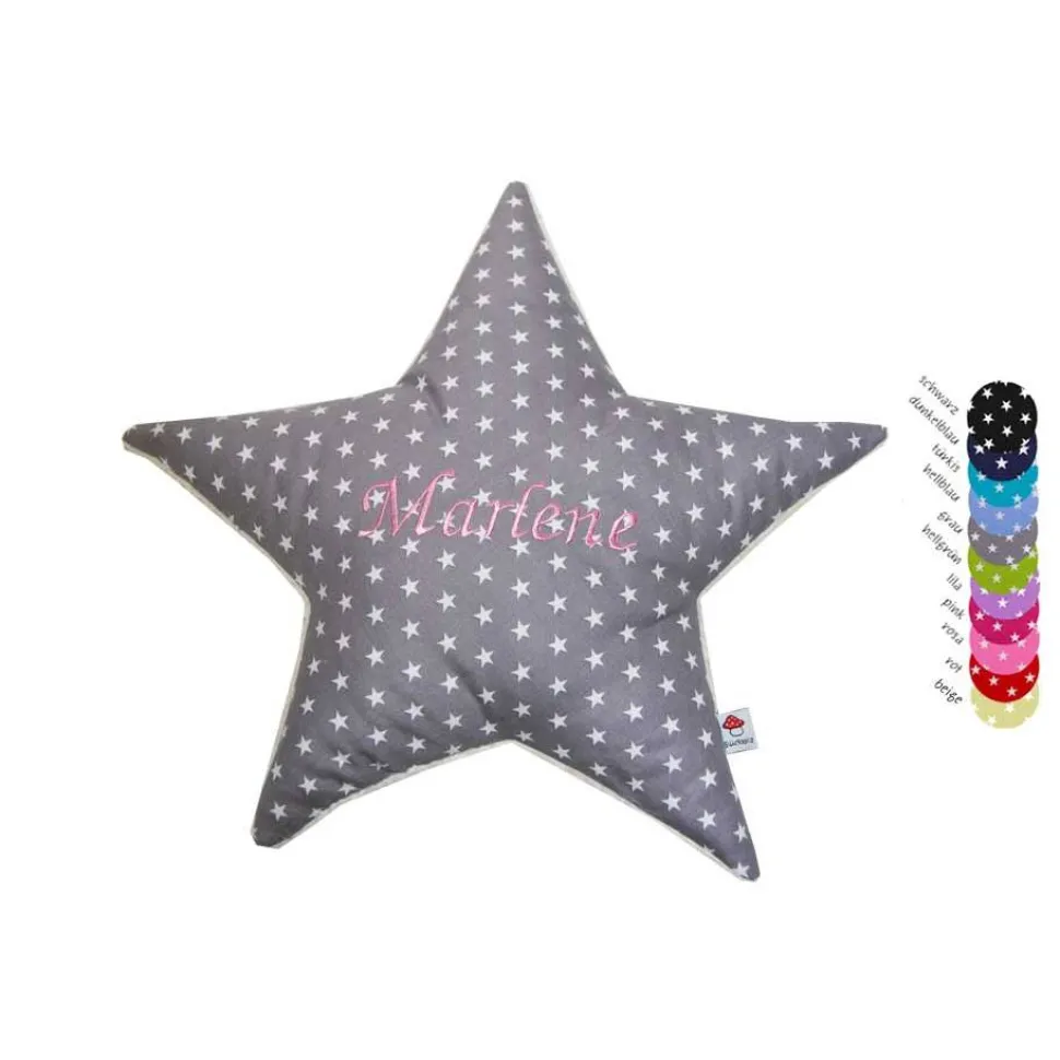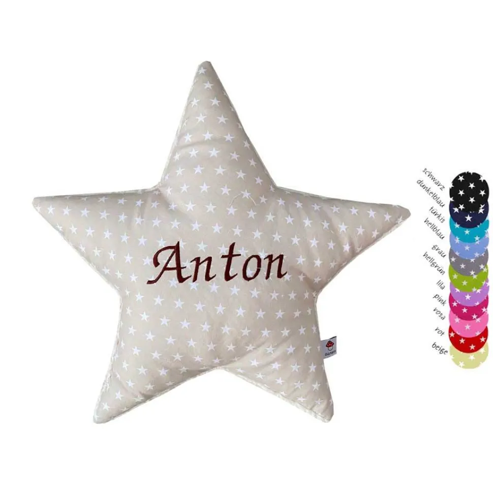 Mit Namen bestickt ist dieses Sternenkissen ein ganz individuelles Geschenk zu Weihnachten, Geburt oder Taufe.