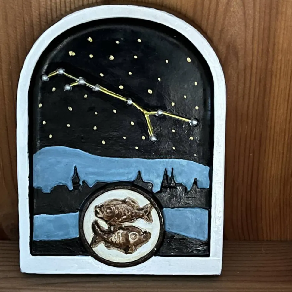 Der Gipsrohling wird individuell bemalt und ist ein Unikat. Bei der Bestellung bitte die Farbwünsche des Rahmen und des Sternzeichen angeben.