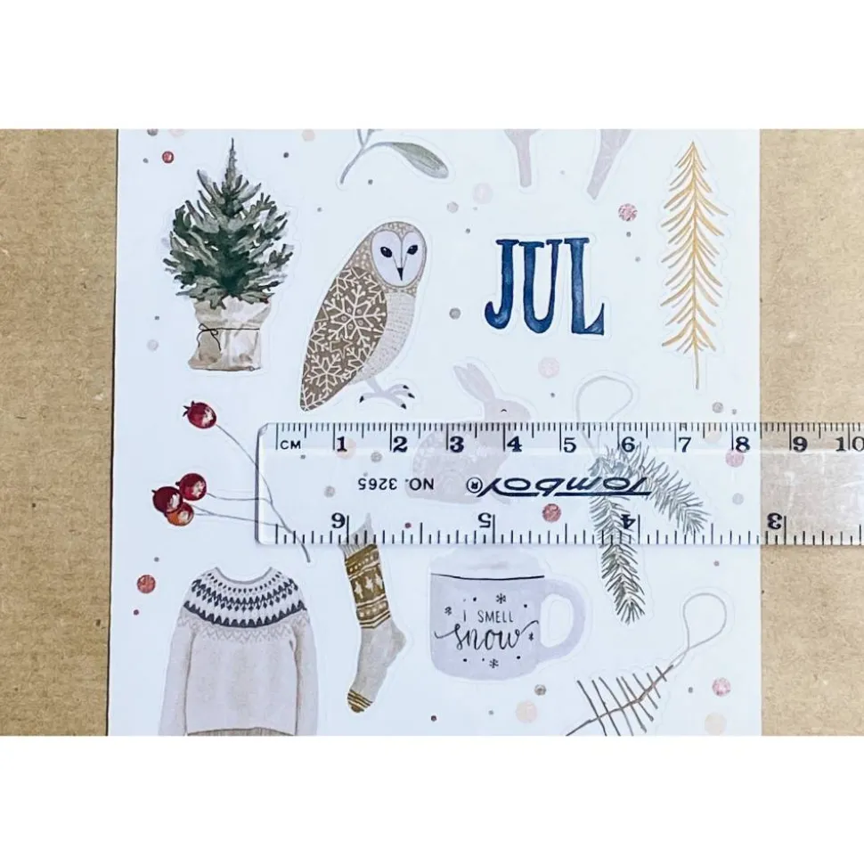 Du erwirbst 1 Stickerbogen mit 14 verschiedenen wunderhübschen Illustrationen aus dem winterlichen Skandinavien.