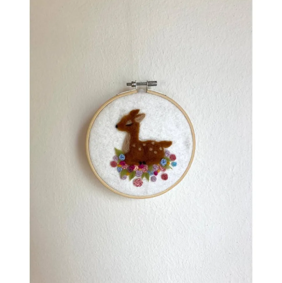 Stickrahmen, kleines gefilztes Reh, Wanddekor, Kinderzimmerdeko, befilzter Stickrahmen, Geschenk Taufe, Geburt, Babypart