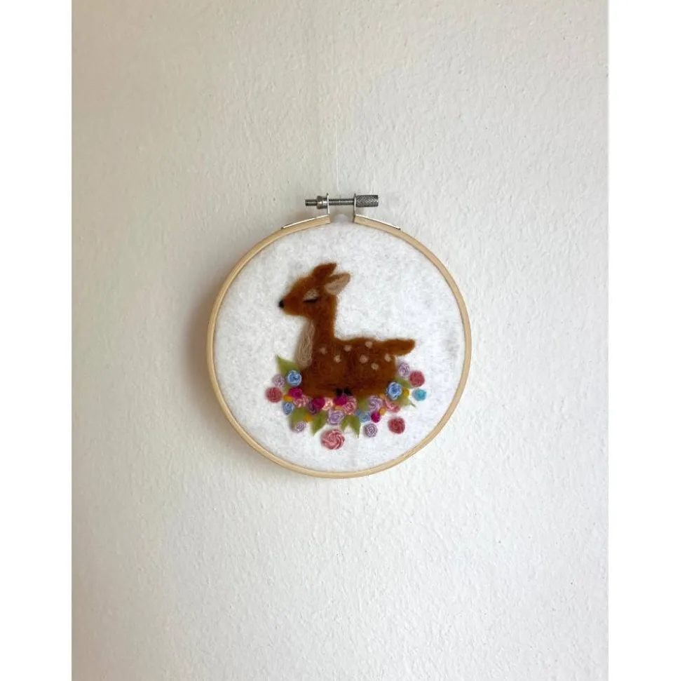 Stickrahmen, kleines gefilztes Reh, Wanddekor, Kinderzimmerdeko, befilzter Stickrahmen, Geschenk Taufe, Geburt, Babypart