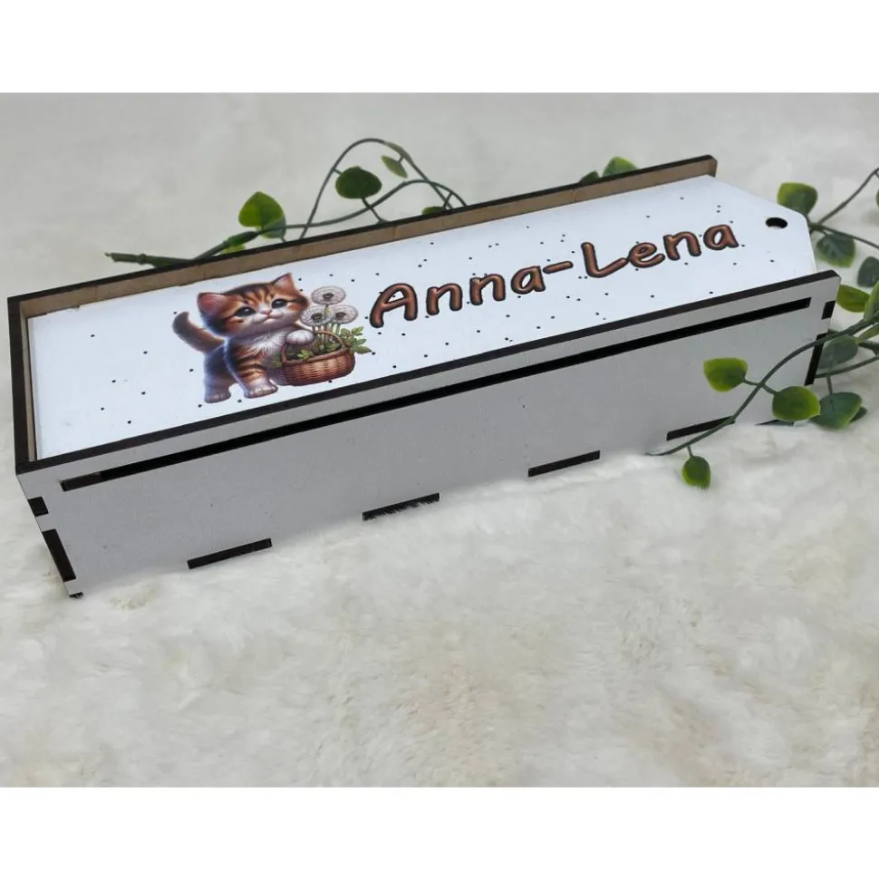 Stiftebox aus Holz personalisiert | Geschenk Einschulung| Federmäppchen Stifte Etui | Stifthalter Katze