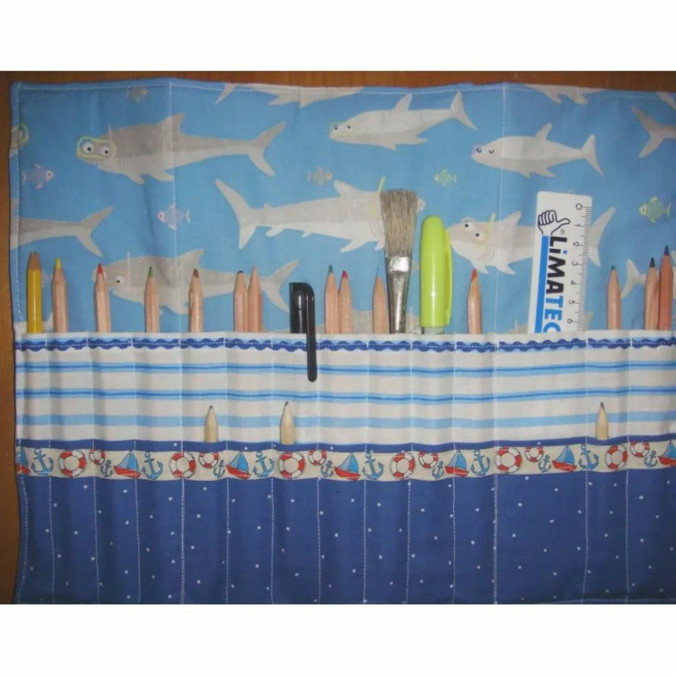 Entdecke die vielseitige Stifterolle Einschulung Rollmäppchen 28 Fächern für kurze und lange Stifte – Meer Fische blau!